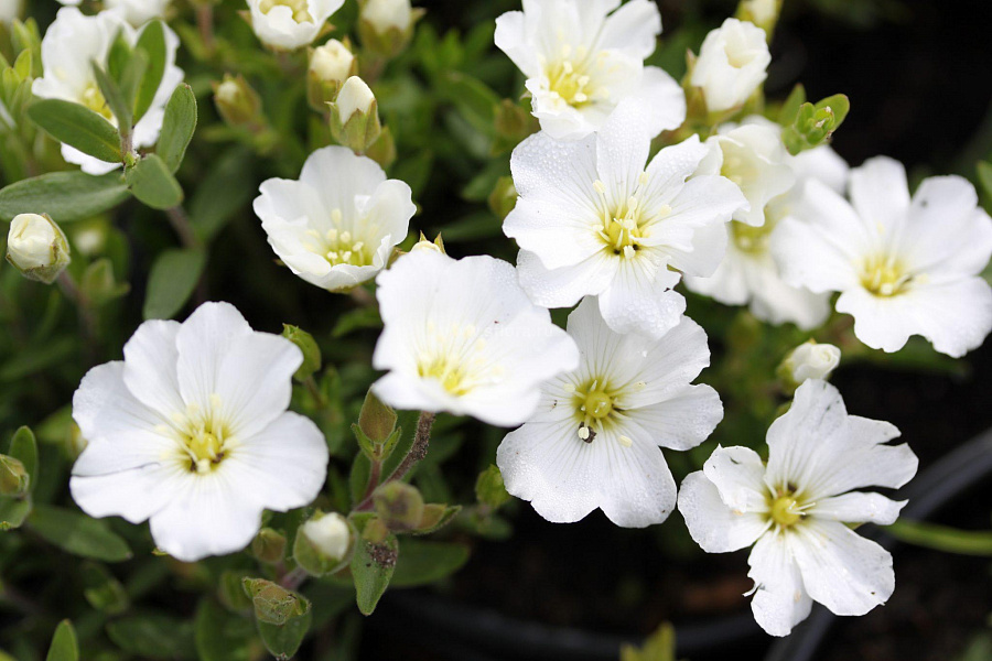 Песчанка горная Blizzard Compact - это удивительное растение с нежными белыми цветками, которые привлекают внимание своей изящностью. Ее стебель компактный, а высота достигает 2-5 см, что делает ее идеальным выбором для создания миниатюрных садовых композиций. Листья песчанки горной имеют интересную форму и придают растению особый шарм.