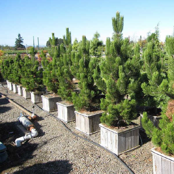 Саженцы Сосны боснийская Сателлит (Satellit, Pinus leucodermis) – компактное хвойное дерево пирамидальной формы, его высота не превышает 300 сантиметров. Сорт уникален своим ответвлением. Его побеги равномерны, растут все под одним углом. Крона плотная, густая, диаметром до 150 сантиметров.