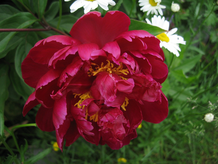 Саженцы пиона древовидного Пурпурный феникс (Paeonia Suffruticosa) подходят для групповых посадок, но лучше всего смотрятся в одиночных. Кусты раскидистые, стебли высотой до 1,2 метров. Листва пышная. Растение морозостойкое, переносит холода до минус 25 градусов. Пион предпочитает солнечные участки. Цветки роскошного бордового оттенка, соцветия махрового типа. В середине лепестки маленькие и волнистые. Диаметр цветков от 20 до 25 сантиметров. Зацветает пион в конце мае, большинство бутонов распускаются в одно время. Продолжительность цветения – около двух недель.