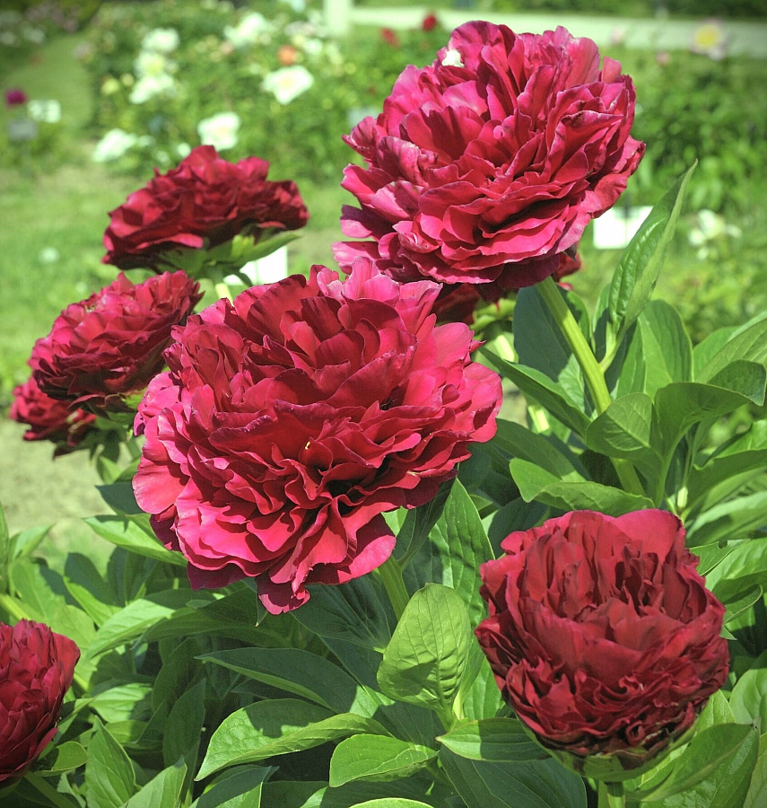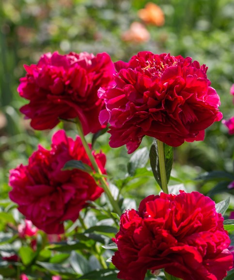 • Пионы используются для посадки многолетних клумб или создания групп растений. Они хорошо сочетаются с лилейниками, астрами или другими луковичными растениями.