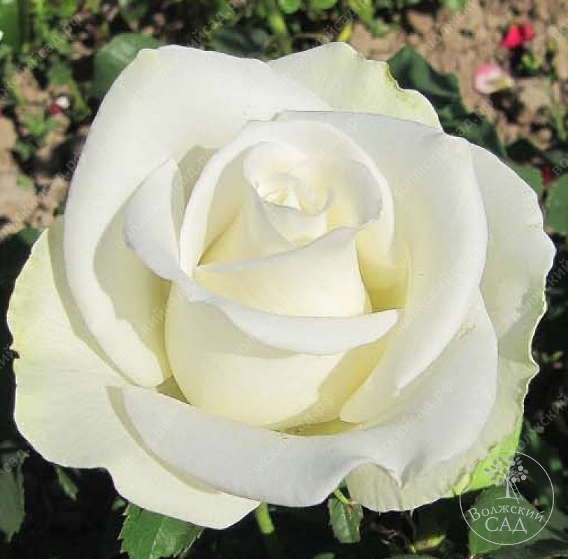 Цветок: чисто белый до голубоватого, чашевидный, с высоким центром, махровый, 20 - 30 лепестков в одном цветке. .Цветки красиво сочетаются с темно-зелеными крупными листьями. Роза может использоваться на срез, долго сохраняет свежесть в букете. Зимостойкость средняя, на зиму требует укрытия.
