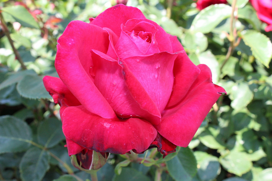 Роза чайно-гибридная "Дам де Кер" - это великолепное растение с изысканным вишнево-красным цветком, который радует глаз своей красотой. Ее ствол прочный, а размеры достигают высоты до 125 сантиметров и диаметра до 100 сантиметров. Листья темно-зеленые, форма у них элегантная, что придает растению особый шарм.