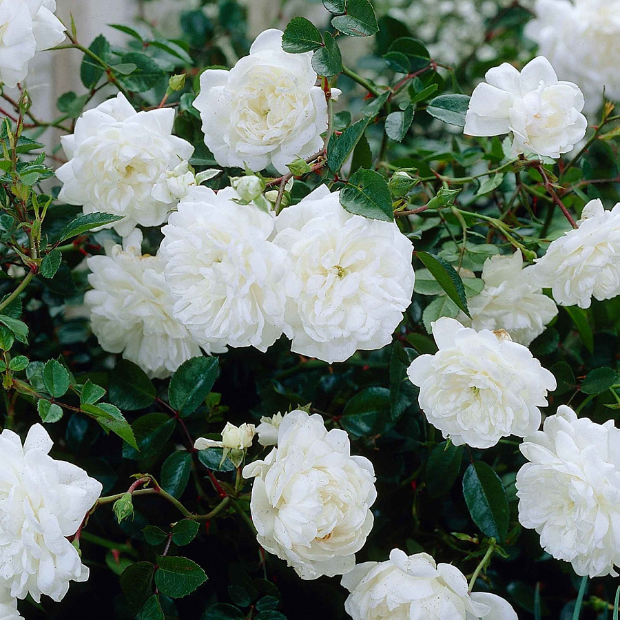 Саженцы розы почвопокровной Сноу Балет (Snow Ballet): Очаровательный сорт розы по-настоящему привлекает внимание в любом саду. Белоснежно белые цветы с желтой серединкой. Растет небольшим, широким и густым кустом, с элегантно нависающими побегами. Красота, не требующая особого ухода. Многочисленные махровые цветки источают нежный, тонкий аромат и сохраняются особенно долго. Характерные особенности растения: