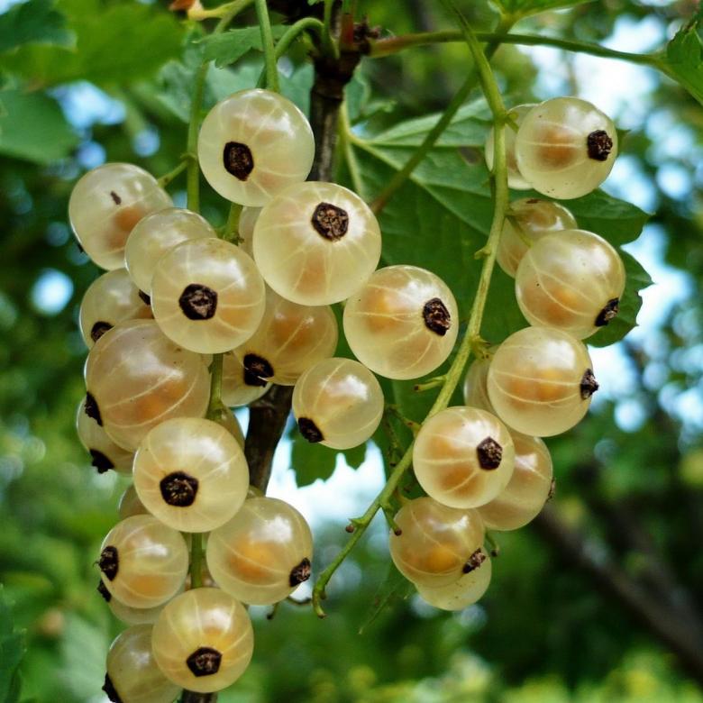 Саженцы смородины Белая фея понравится всем садоводам, желающим обзавестись необременительным в уходе сортом белоплодной смородины. Белая фея среднерослый, достаточно густой куст (может понадобится регулярное прореживание), молодые побеги средней толщины, зеленые с красноватым оттенком. Ягоды средних размеров, преимущественно одинаковые, беловатого цвета, урожайность считается высокой. Вкус характеризируют как десертный, аромат выражен достаточно слабо. Сорт практически не нуждается в опылителях, устойчив к заморозкам, вредителям и заболеваниям грибковой природы.