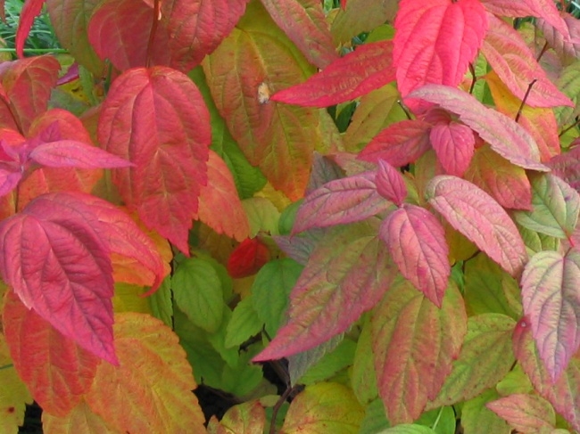 Сорт спиреи Крупнолистный уникален своими листьями яйцевидно удлиненной формы, длина которых достигает до 20 сантиметров, ширина – до 10 сантиметров. В весенние месяцы, во время распускания, листья обладают красным окрасом, который летом меняется на зеленый, а осенью на желтый оттенок. Цветет кустарник в июле-августе мелкими розовыми цветками, собранными в соцветия.