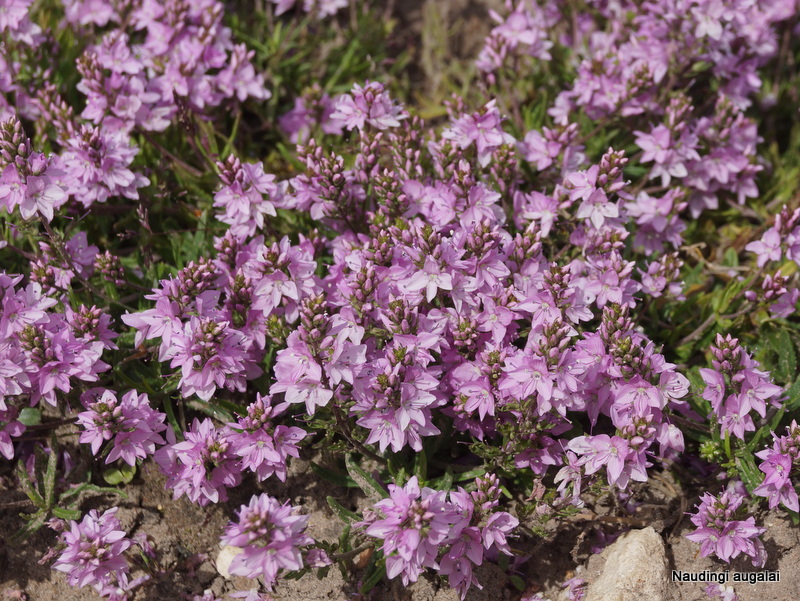 Рассада вероники простертой Mrs Holt не требовательна к почвам. Может расти на любых рыхлых садовых грунтах, но наиболее предпочтительные сухие, легкие, песчаные или каменистые почвы. Используется многолетник преимущественно для оформления альпинариев, рокариев, бордюров. Сорт стелющийся, подушковидный, высотой 10-15 сантиметров, диаметром 20-30 сантиметров. Побеги тонкие, густо покрыты серовато-зеленой листвой. Зацветает вероника простертая Mrs Holt в мае – июне. Цветочки мелкие, яркого розово-сиреневого оттенка, собираются в густые многоцветковые соцветия.