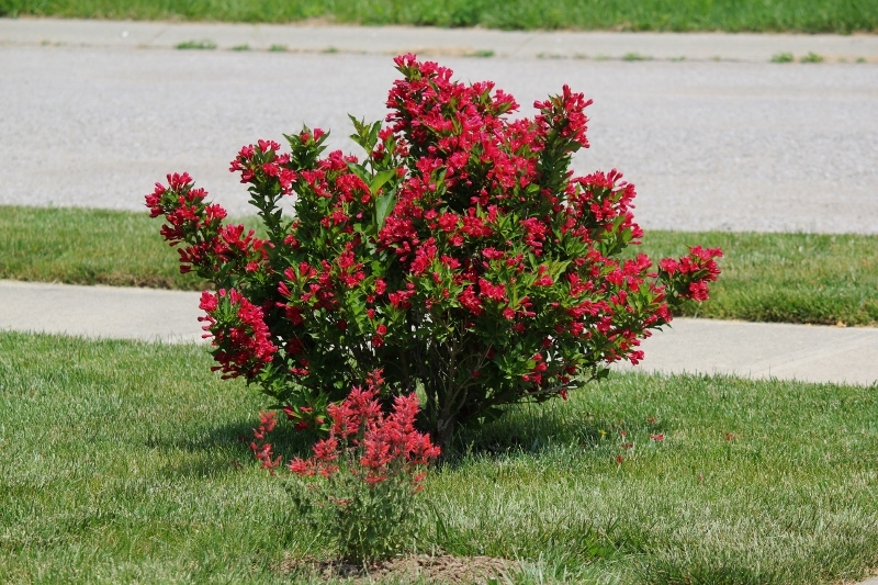 Саженцы Вейгелы гибридной Ева Ратке (Eva Rathke, Weigela hybrida) – морозостойкий декоративный кустарник семейства Жимолостные станет прекрасным украшением придомового участка или парка. Подходит для оформления миксбордеров и одиночной посадки, выделяя пышно цветущей кроной. Побеги вейгелы Евы Ратке достигают 150 см в высоту. Под тяжестью красных крупных цветков они сгибают к земле, формируя шар диаметром до 3 м. Расцветка цветков неравномерна: внешняя часть более красная, внутренняя – со светлым подтоном. Аромат приятный. Листья зеленые, продолговато-эллиптические. Кустарник высаживают на дренированных и хорошо освещенных участках.