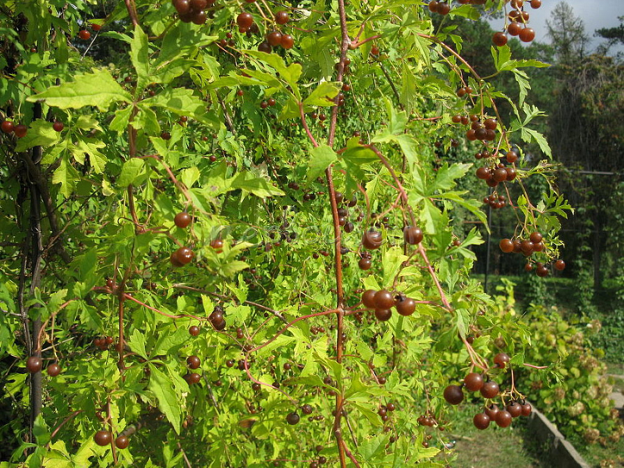 Осенью на растении созревают многочисленные шаровидные плоды оранжево-коричневой окраски, они растут на длинных алых плодоножках. Сорт теплолюбив, нуждается в укрытии на зиму. Листья на солнце более яркие, но выдерживает растение и полутень.