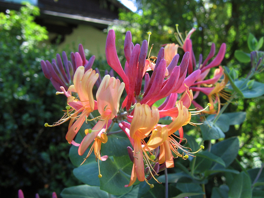 Саженцы жимолости гекротты (Lonicera ?heckrottii) имеют темно-зеленую, яйцевидную листву, которая располагается супротивно друг дружке. Кустик пышный, хорошо вьется. Цветочки нежные, обильно покрывают стебли и собраны в пучки. Достоинства жимолости гекротты: - зимоустойчива - засухоустойчива - неприхотлива в уходе Крупномеры жимолости гекротты лучше посадить на солнечных местах участка, но может расти и в тени с рыхлой, дренированной почвой. Поливать нужно в жаркую погоду регулярно. Применяется для украшения различных декораций в саду, в альпинариях, в каменистых садах.