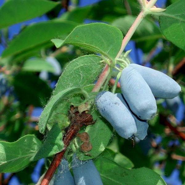 Семена и рассада жимолости съедобной «Голубое веретено» вырастают в кустарники средних размеров компактной формы. Средняя высота растения едва превышает один метр, а ширина – не больше 130 см. Плоды на ветках появляются в середине сентября. Они имеют продолговатую форму и темно-синий цвет. Для человека они безопасны и вполне съедобны, могут использоваться для консервации или употребления в свежем виде, но вкус слегка терпковатый, на любителя. С одного куста за период урожая можно собрать до 6 кг ягод. Растение устойчиво к самым распространенным заболеваниям, не поражается паразитами.